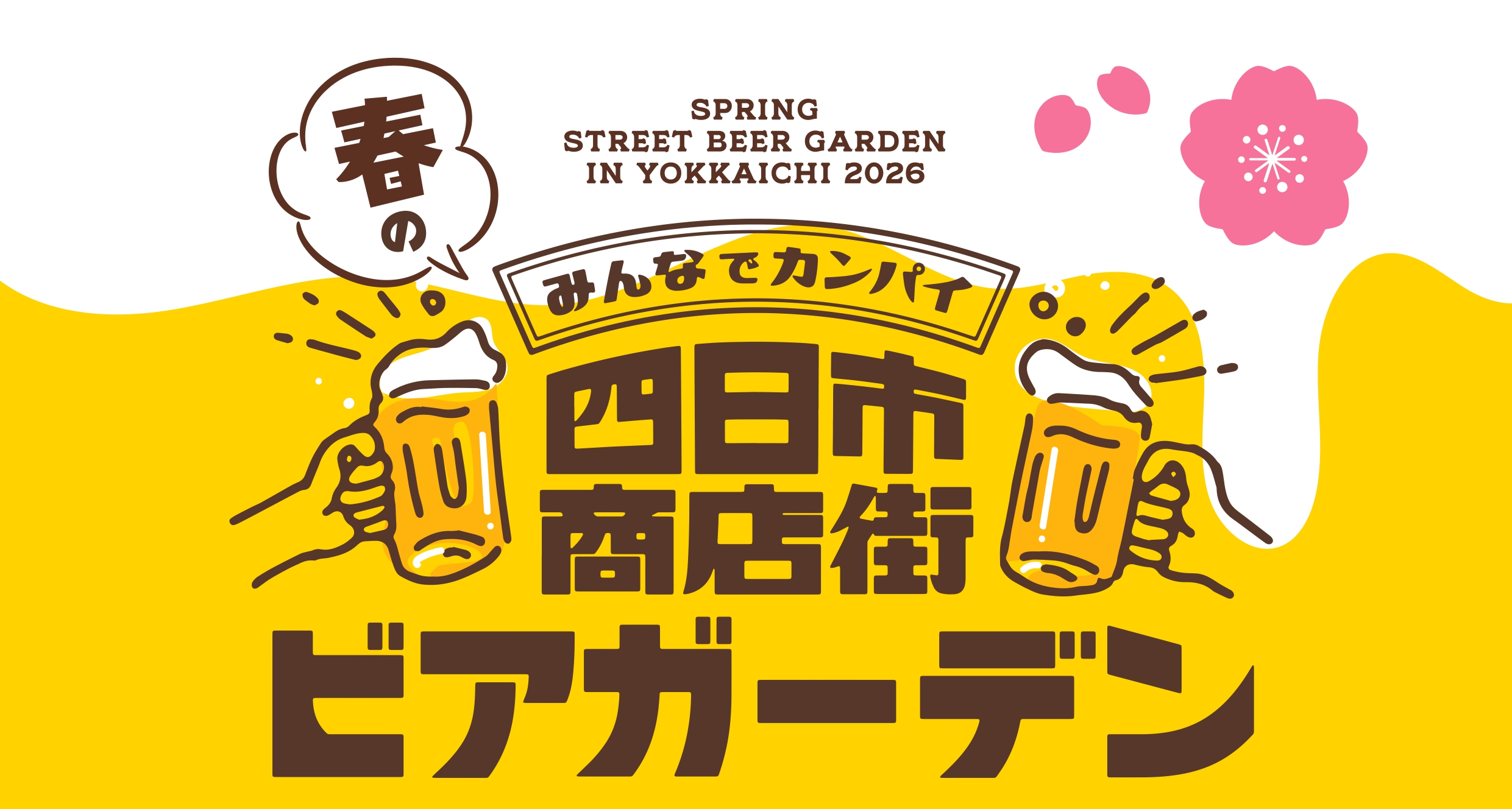 4月5日(日)に商店街内アーケード(公園通り、南大通り)にて春の 四日市商店街ビアガーデンを開催いたします。