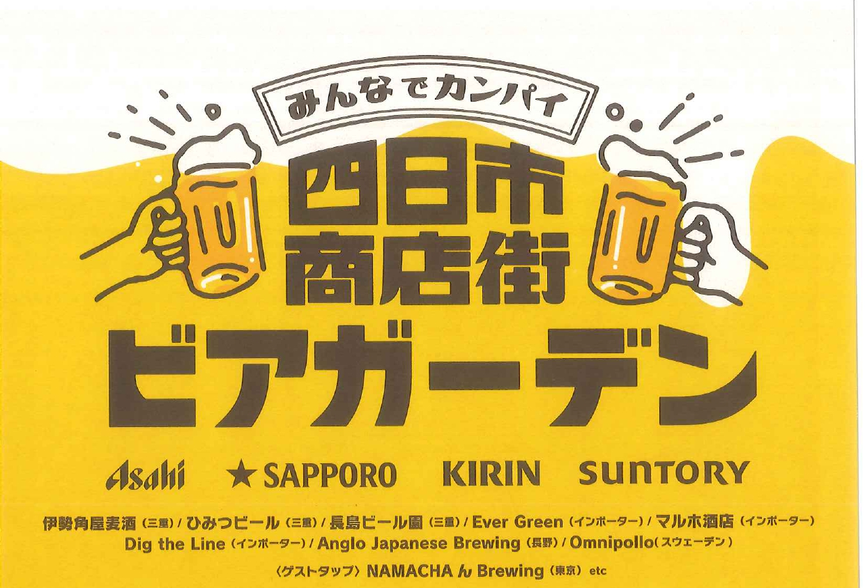 四日市商店街ビアガーデンが9月27日(土)28日(日)に行われます。ぜひご参加ください! 日時:9月27日(土)28日(日) 11時~16時 ※雨天決行 場所:近鉄四日市駅前商店街 アーケード内 https://yokk …